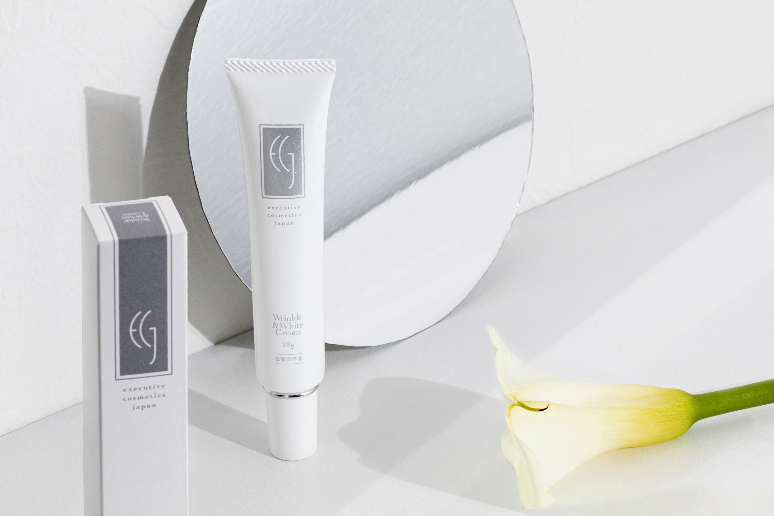 ロゴの四角と、光・アンチエイジング(鏡を見るのが楽しくなる)の象徴としてとらえ、 ECJのブランド構築のシンボルとして鏡をイメージしました。